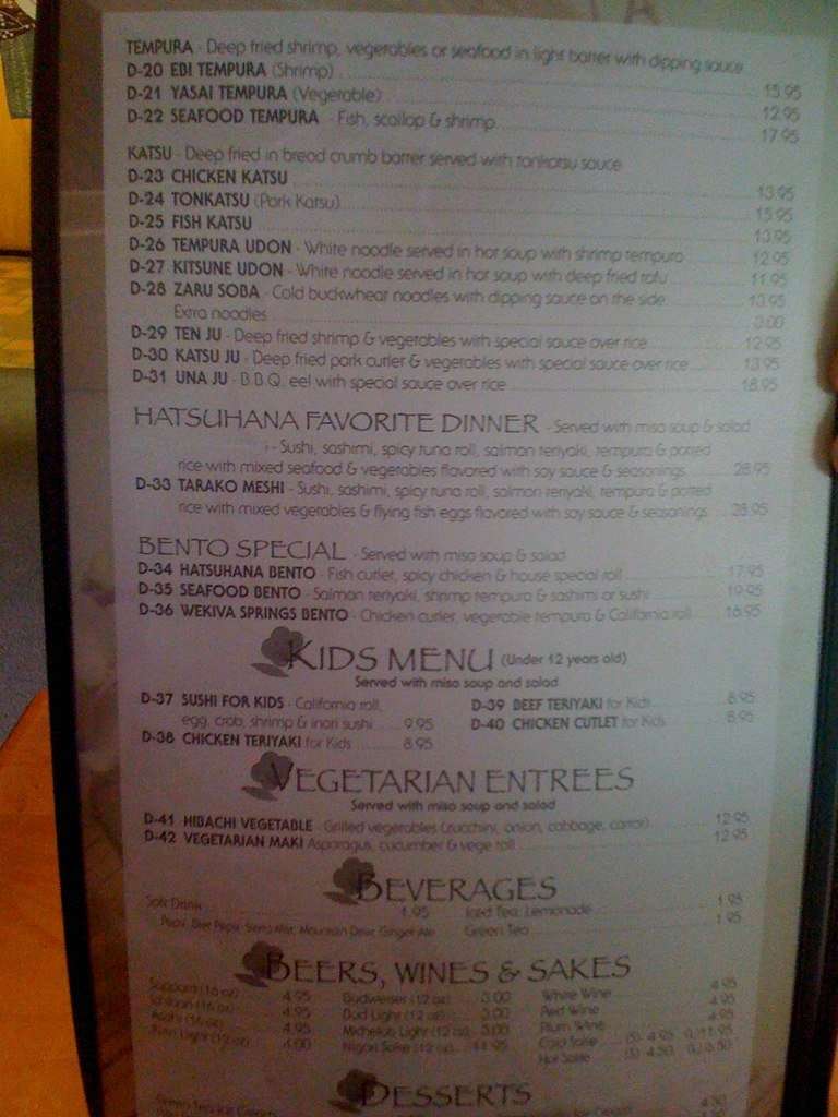 Hatsuhana Japanese Restaurant Menu